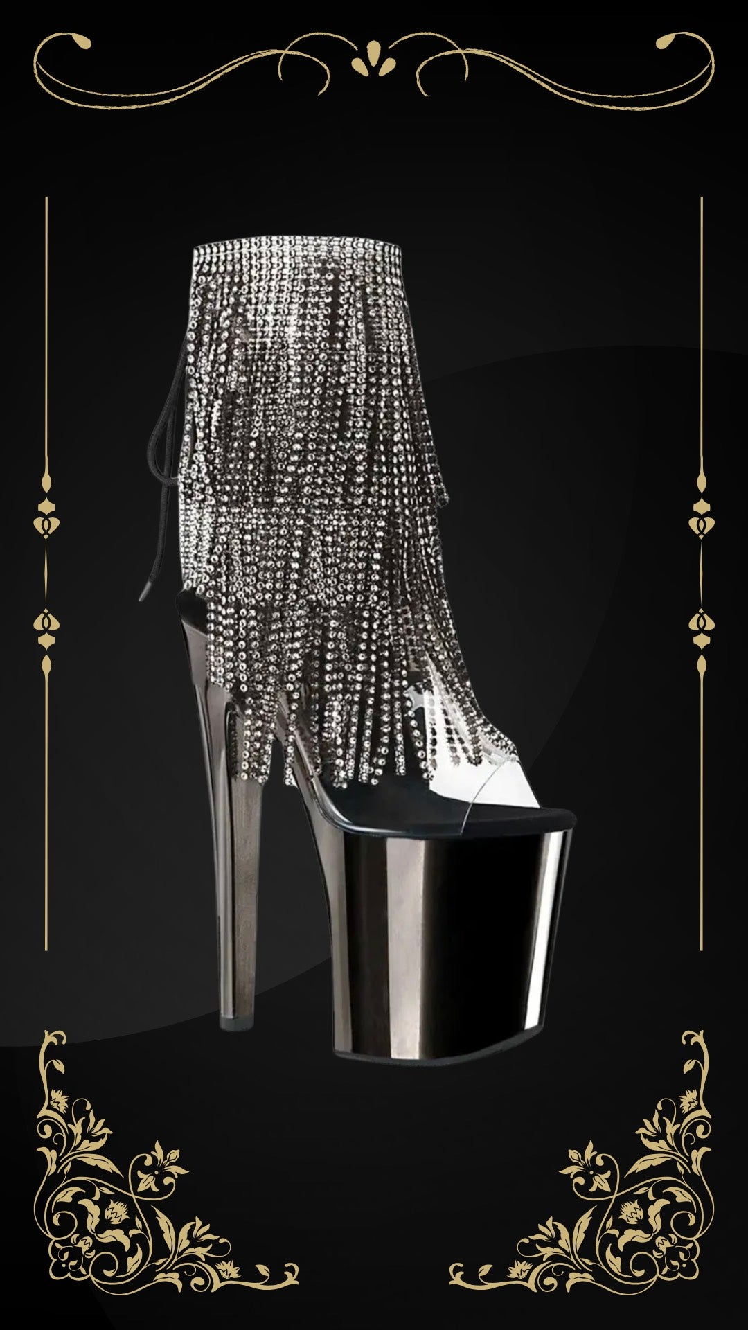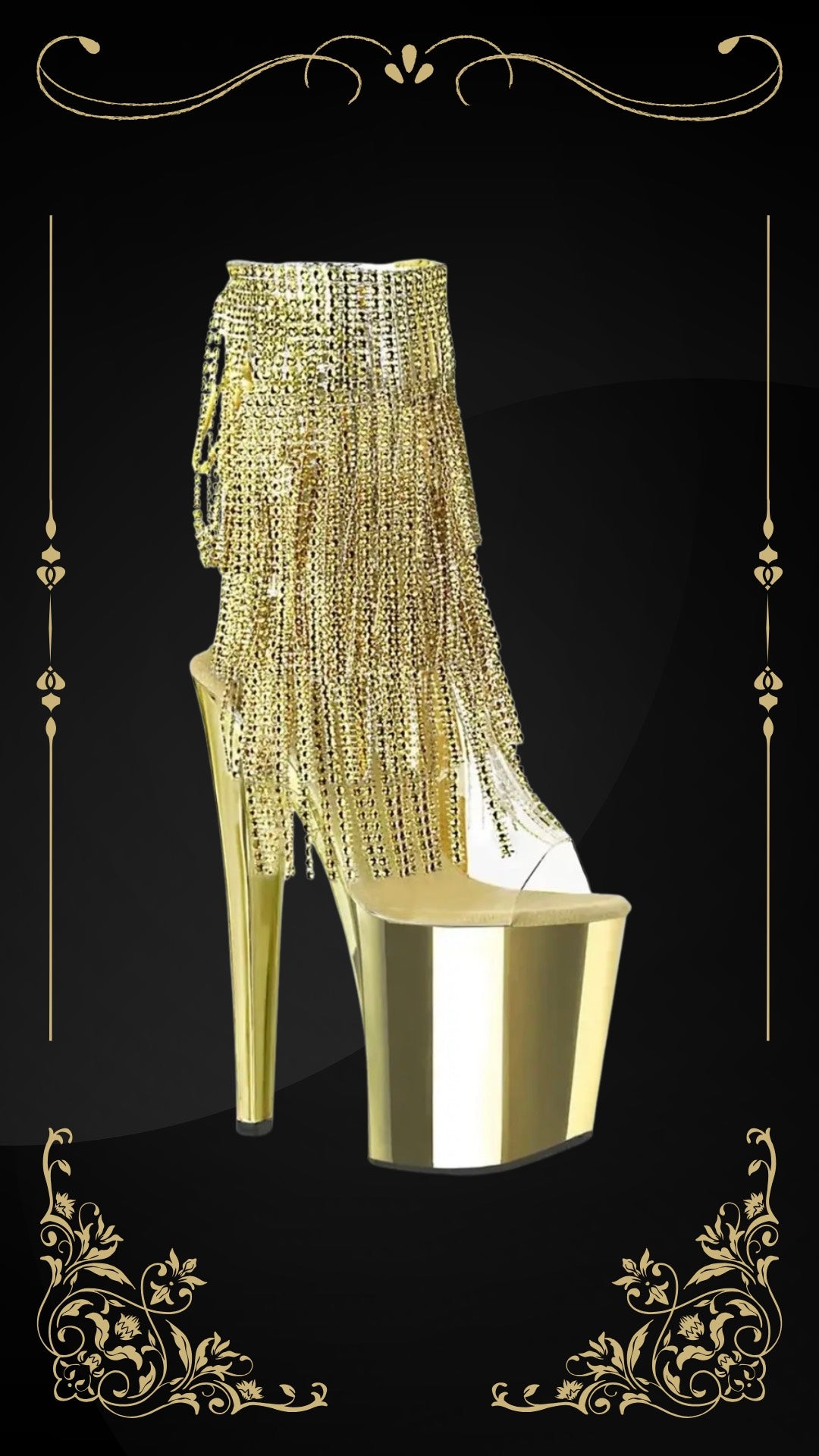 Comes in Hot Pink, Gold, Black, Silver Chrome Ankle Boots with Tassels.