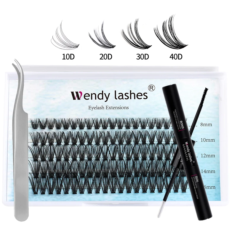 Wendy Lashes 60D/80D Lash Extension Kit 8-16mm Mix Lashes and Bond and Tweezers Faux Mink Eyelash Cilios Eyelash Supplies